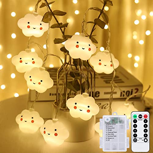 Meision Catena luminosa nuvole per cameretta dei bambini, con timer e telecomando, 3 m, 8 modalità, 20 LED, luci decorative per camera da letto, matrimonio, Natale