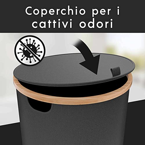 Meisterfaktur Cesto biancheria sporca con coperchio - 100 litri - Cesto biancheria sporca XXL con sacca rimovibile per il bucato- Cesta portabiancheria con struttura in bambù! (Grigio scuro)