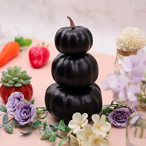 Meiwlong Zucche artificiali in schiuma artificiale impilate decorazione torre autunno raccolto Halloween Ringraziamento Natale centrotavola - nero