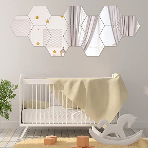 MEIYAXINWIN 12 Pezzi Adesivo da Parete a Specchio, Esagonale Autoadesive Specchio Adesivi per la Decorazione della Camera da Letto dell'Ufficio Domestico