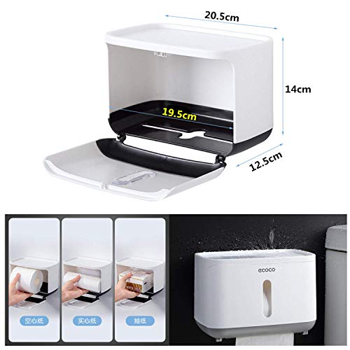 Meiyijia Porta Rotoli Carta igienica con Supporto Porta Cellulare fissato al Muro Bagno,Porta Carta Igienica Senza Foratura,Autoadesivo,con Copertura Impermeabile e Antipolvere (Nero + Bianco)