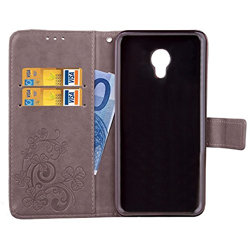 Meizu Meilan 5 Case, caso del modello in pelle fortunato Floweres Pressato TPU con il supporto del cordino e portafoglio per Meizu Meilan 5 ( Color: Gray )