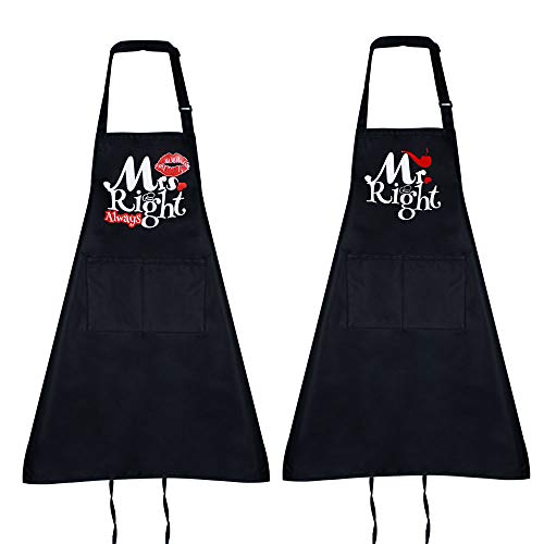 MEJOSER 2 grembiuli da cucina neri regolabili Mr Mrs impermeabile per coppia giovani sposi donna uomo amanti