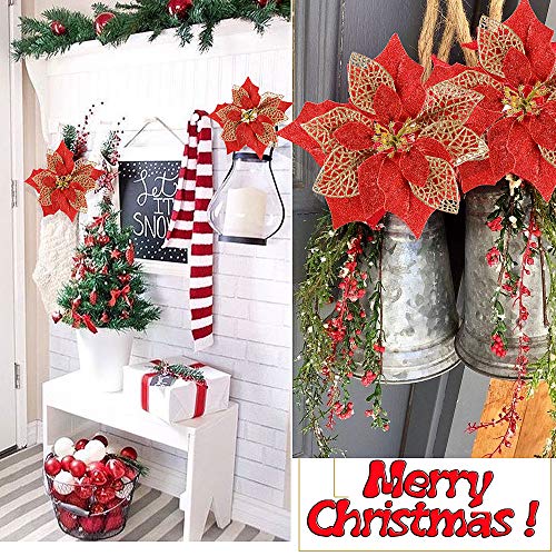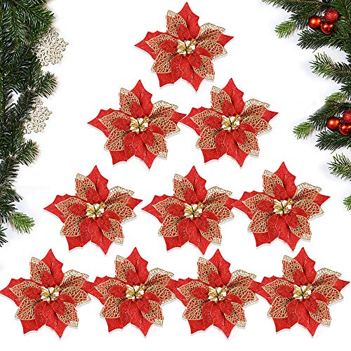 MEJOSER (Dia. 22cm) 10 Pezzi Ornamenti Albero di Natale Rosso Fiore Artificiale Finti Addobbi Natalizi Decorazioni Natalizie