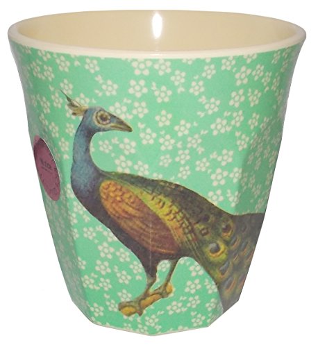 Melamine Medium Cup with Aqua Flower and Peacock Print by Rice DK