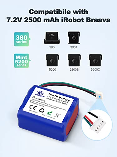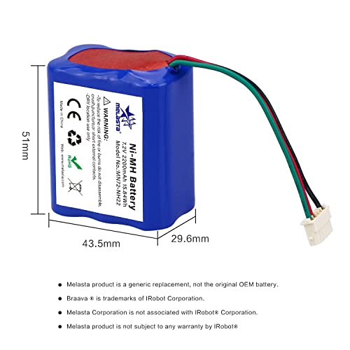 Melasta Ni-MH Batteria 7.2V 2200mAh per iRobot Braava 380 380T 390 390T, Mint 5200 5200B 5200C Aspirapolvere Robot di Pulizia, irobot batteria ricambio per Batteria, batteria roomba