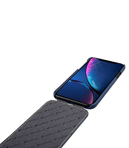 MELCKO Custodia per Apple iPhone XR (6,1 pollici), esterno in pelle rivestita, custodia protettiva a libro con aletta e chiusura a linguetta, custodia ultra sottile, colore: blu