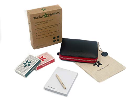 Melia Games Playing Cards Set Deluxe - Set di Carte da Gioco - Custodia in Pelle Fatto a mano (Designer Edition) (Black)