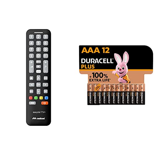 Meliconi Easytel TV+ Telecomando Universale per TV, comanda anche le funzioni di base delle Smart TV & Duracell - Plus AAA, Batterie Ministilo Alcaline, Confezione da 12, 1.5 volt LR03 MN2400