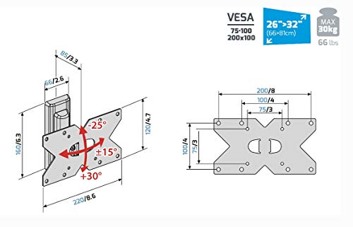 VESA: questa staffa tv è compatibile universalmente con tutti i dispositivi con foratura VESA 75x75, 100x100, 200x100;