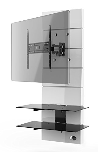 Meliconi Ghost Design 3000 Rotation Supporto Doppio Braccio Orientabile per TV da 32" a 70" con Mensole in Vetro Temperato, Bianco