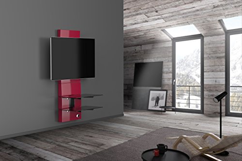 Meliconi Ghost Design 3000 Supporto per TV da 32" a 63" con Mensole in Vetro Temperato, Rosso