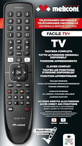 Meliconi | telecomando universale GUMBODY FACILE TV+ | corpo in gomma, compatibile con la quasi totalità delle TV in circolazione.