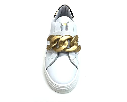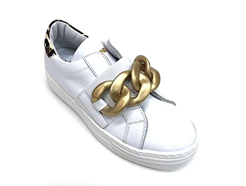 Meline Art. UG1500 Sneaker Donna in Pelle Bianca Catena Oro (Numeric_39)