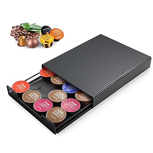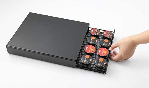 Materiale di alta qualità o supporto per capsule di caffè, aspetto nero, materiale metallico. Il nuovo design migliorato facilita l'apertura e lo stoccaggio di tutte le capsule di caffè in un unico posto. Classifica le capsule dalla tua varietà preferita: Nespresso (Original vertoo) dolce gusto tchibo cafissimo expressi.