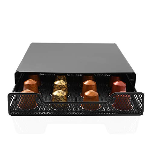 MelioCafe porta capsule Nespresso, Dolce Gusto, Tchibo, Lavazza 20 capsule, piedini antiscivolo, cassetto mesh, nero, contenitore capsule, nero