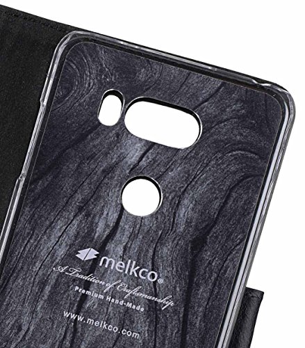 Melkco Portafoglio Flip Front Folio Book Case Kick Stand Funzione Slot per schede Holster Tasca laterale Chiusura magnetica Premium Portafoglio in pelle Book Clear Case Custodia per LG V30 - Portafoglio Clear Type Stand ( Nero d'epoca )