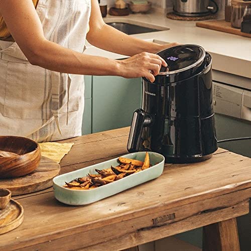 【AIRFRYER - Perfetto per tutta la famiglia】La friggitrice ad aria Crunchy! ha un motore AC 1230W. Vi permetterà di friggere in maniera sana fino a 200°C senza problemi. Potrai godere di una macchina per friggere senza olio con una potenza maggiore e un basso consumo. Crunchy! non è una friggitrice piccola, poiché ha una capacità interna di 1,5 litri, che permette di friggere porzioni per 2-3 persone in modo rapido ed efficiente.