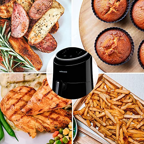 Mellerware - Pack | Frullatore estrattore Smooth! + Friggitrice ad Aria Crunchy! | BLENDER: 1000W estrattore nutrienti, smoothie, frullati, succo | AIRFRYER: 1.4L compatto 1230W Menu, 80-200°C | Nero