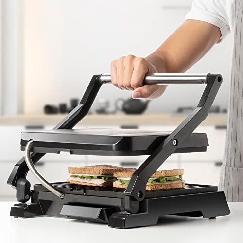 ♂️【SISTEMA DI APERTURA A 180° PIASTRA】La nostra piastra elettrica è perfetta per cucinare perchè offre l'oportunità di un'apertura a 180°. Sistema che ti permette di aprire al massimo la griglia elettrica sul tavolo o sul balcone e cucinare il doppio degli ingredienti allo stesso tempo, senza mescolare i sapori.
