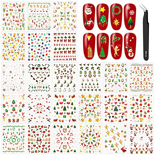 MELLIEX 24 Fogli Adesivi per Unghie Natalizi, 3D Autoadesive Adesivi Unghie Decalcomania con Pinzette per Donna Ragazze Bambini