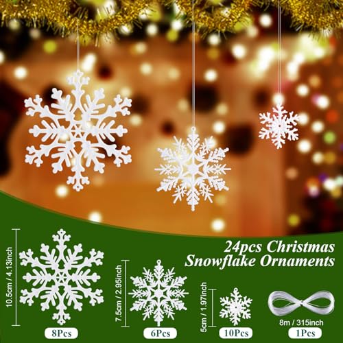 ❄️Pacchetto❄️ - Il pacchetto contiene 24pcs di ornamenti di plastica fiocco di neve, tra cui 8pcs grandi fiocchi di neve, 6pcs fiocchi di neve medie e 10pcs piccoli fiocchi di neve. Abbastanza per soddisfare le vostre esigenze di decorazione.