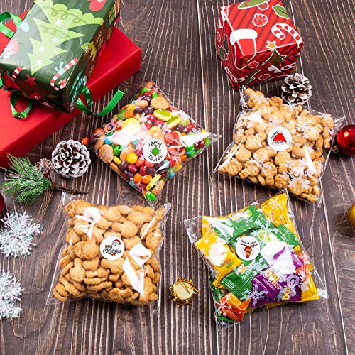 MELLIEX 100 Pezzi Sacchetti Regalo in Cellophane Natalizio, Sacchetti per Biscotti con Fiocchi di Neve Riutilizzabili Autoadesivi per Natale con Adesivi per Le Vacanze