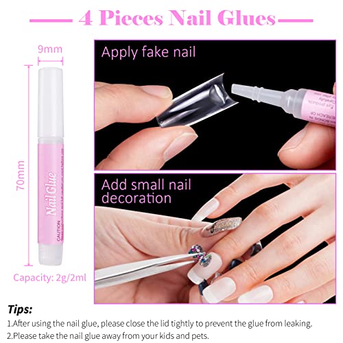 Con Colla - Il set di unghie finte acriliche viene fornito con 4 pezzi di colla da 2 g. Queste colle si asciugano rapidamente e aderiscono bene, possono essere utilizzate per fissare le unghie o attaccare decorazioni.