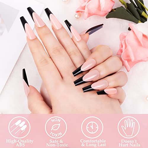 Stile alla Moda - Le punte delle unghie finte della bara sono uno stile francese a forma di balletto lungo, sono progettate con pre-bianco e pre-nero sulla punta dell'unghia, abbinandosi perfettamente al tuo look quotidiano e alla moda.