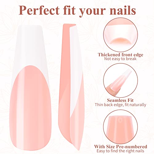[Stile Alla Moda] - La forma delle premere su unghie finte è in classico stile francese, romantica e alla moda. Puoi usarli direttamente o tagliarli in qualsiasi forma tu voglia!