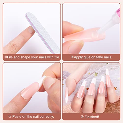 [Pacchetto Incluso] - Riceverai 192 unghie finte lunghe, 2 colla per unghie e 1 lima per unghie, quantità sufficiente per soddisfare le tue esigenze di decorazione delle unghie DIY.