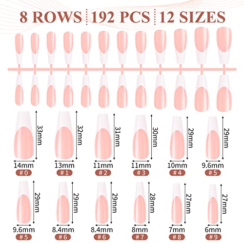 MELLIEX 192 Pezzi Unghie Finte Lunghe, Bara Francese Press on Unghie Finte con Colla e Lime, Compertura Completa Unghie Finte Acriliche per Donna Ragazza