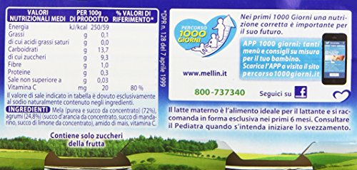 Mellin - Mela Agrumi, Omogeneizzato dal 4 mese compiuto - 12 confezioni da 2 pezzi da 100 g [24 pezzi, 2400 g]