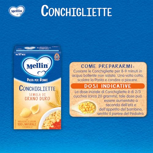 Mellin - Conchigliette - Pasta di Semola di Grano Duro e Vitamina B1, per Bimbi dal 10° Mese Compiuto - 1 Confezione da 280 grammi (Totale 280gr)