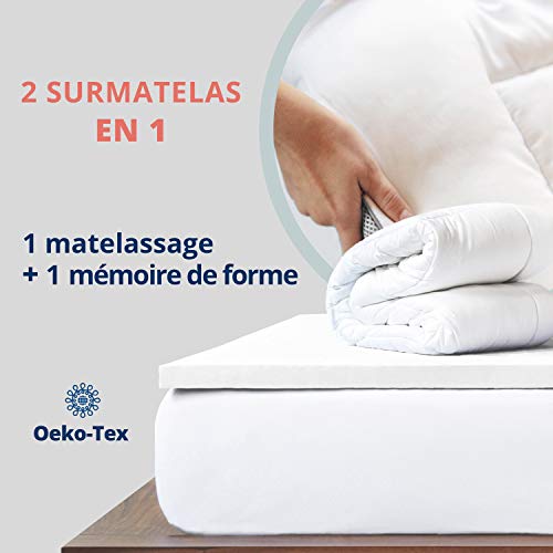Mello - Coprimaterasso Duo 8 cm Oeko-Tex, coprimaterasso 140 x 190 realizzato in Francia, eletto prodotto dell'anno 2021 Coprimaterasso in memory foam e fodera in cotone trapuntato, supporto morbido.
