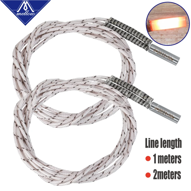 Mellow 1pcs 3D Printer Parts Reprap Ender 3 E3D v6 Heating Tube 12V 24V 50W Ceramic Cartridge Heater for HotEnd J-Head 6*20mm