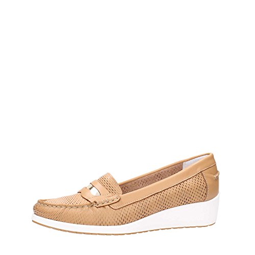 Melluso 01021 Camel Scarpa Donna Mocassino Zeppa Pelle Made in Italy