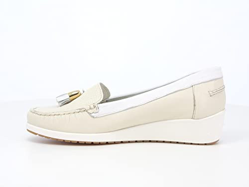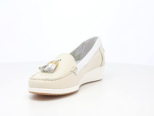 Melluso Mocassino Donna in Pelle Beige e Bianco 01025b 41