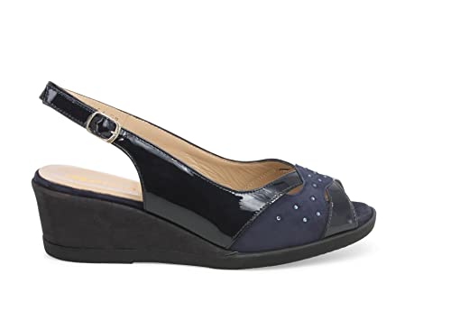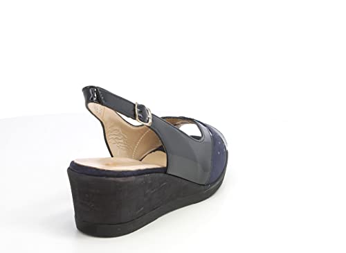 Melluso Sandalo Comodo in Vernice e camoscio Blu Notte t435b 40