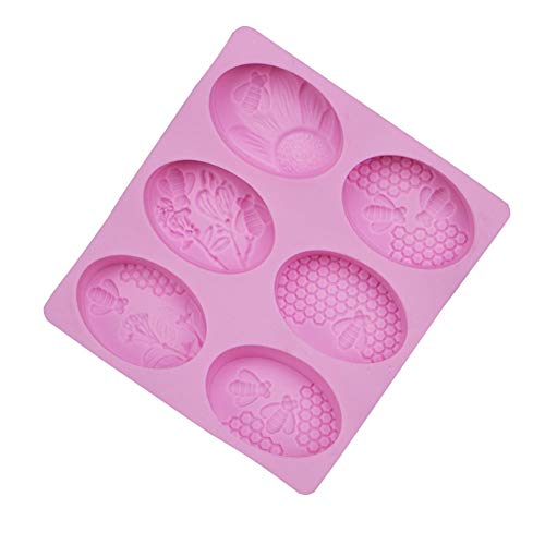MElnN Stampo per Sapone, Stampo 3D a Nido d'Ape in Silicone con 6 Fori, Stampo per Cupcake, Muffin, Candele, teglia da Forno per Fai da Te, Rosa, Taglia Libera