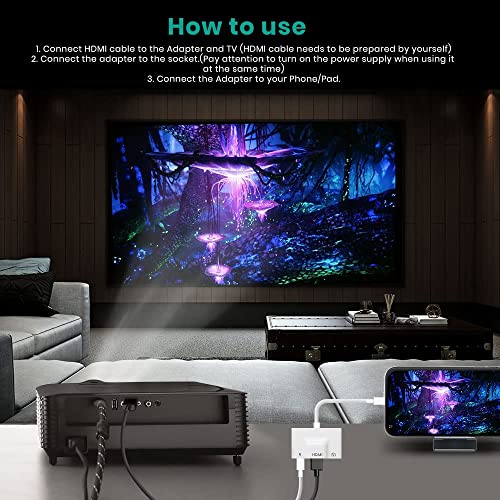 Adattatore HDMI USB 3 in 1: l'adattatore HDMI 3 in 1 non è solo un cavo USB OTG, ma anche un adattatore AV digitale che consente di sperimentare il divertimento del piccolo schermo su grande schermo. Può soddisfare le esigenze di molti utenti, come mettere film, drammi TV e documenti sul televisore o proiettore (supporto HDMI e acquisto separato di cavo HDMI), o la trasmissione di foto o file quando è necessario utilizzare la porta OTG.