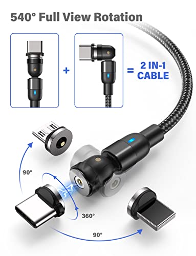 Melonboy Cavo di Ricarica Magnetico USB [1m+1m+2m+2m], 3 in 1 Rotante di 360°+180° Treccia di Nylon compatibile con Micro USB/Tipo C/i-P (Nero), Smartphone