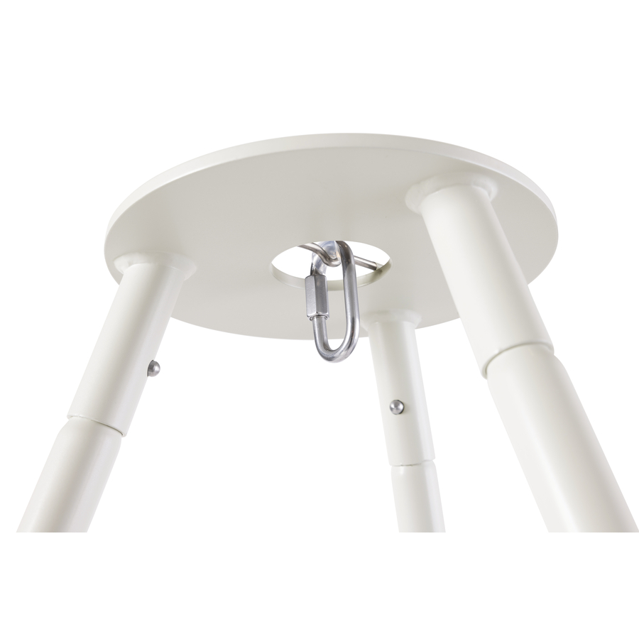 Dettagli del prodotto: Il supporto a culla può essere posizionato ovunque Il sistema Easy-click lo rende facile da usare Facile da trasportare La culla a molla può essere fissata con o senza motore a molla Materiale e cura: Metallo verniciato a polvere Tappi per i piedi in plastica Dimensioni e peso: Altezza: 214 cm Diametro: 140 cm Peso: 7,3 kg La consegna include: Basic 1 x supporto per culla bianco 3 x gambe con piede girevole 3 x gambe senza piede 1 x attacco per stativo 1 x moschettone con isolamento in gomma Attenzione: la molla e la culla a molla non sono incluse nella fornitura.