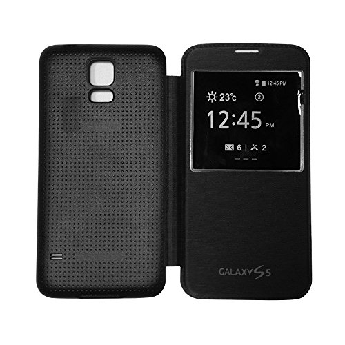 Membrane - Nero S-View Custodia per Samsung Galaxy S5 (GT-i9600 / 4G+ / SM-G900F / SM-G900H) - Flip Case Cover