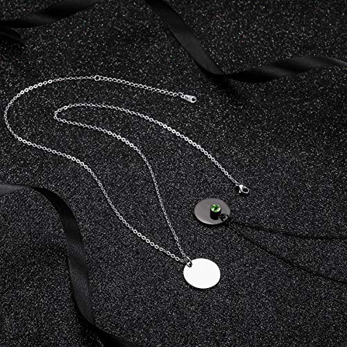 MeMeDIY Ciondolo Tondo Personalizzato Incisione Immagine Testo per Uomo Donna Collana Con Pietra Del Parto Collana In Acciaio Inossidabile Regolabile Amante Commemorativo Gioielli Regalo Di Amicizia