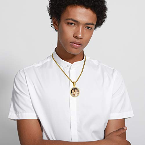 MeMeDIY Collana con foto Personalizzata Personalizzata Medaglia di rame Incisione Testo/Nome Memoria Ciondolo rotondo con catena Hip Hop con Catena di Corda di Fascino (Oro 28 pollici)