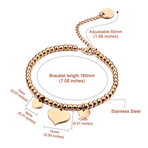 MeMeDIY Personalizzati 2 Pezzo Cuore Fascino Tallone Bracciale Fascino Bracciale Incisione Nomi Personalizzati per le Donne Ragazza in Acciaio Inox Regolabile Perline Link (Colore Rosa-oro)