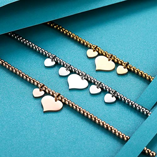 【DESIGN UNICO】 - Disponibile in molti stili, puoi scegliere da 1 a 5 ciondoli a forma di cuore, con diversi numeri di ciondoli appesi con caratteristiche diverse. Un bracciale con un ciondolo è elegante e delicato, mentre un bracciale con cinque ciondoli è più giovanile e vibrante. Sono disponibili 4 colori (nero, oro, argento, oro rosa), puoi scegliere quello che preferisci per mostrare la tua personalità.
