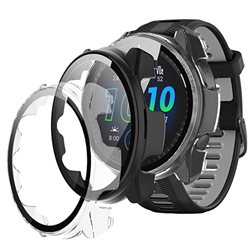 MEMELOKA Cover per Garmin Forerunner 965 con Vetro Temperato[2 Pezzi], Ultrasottile Rigida PC Case Protettiva Anti-Graffio e HD Clear Pellicola Protettiva per Garmin Forerunner 965