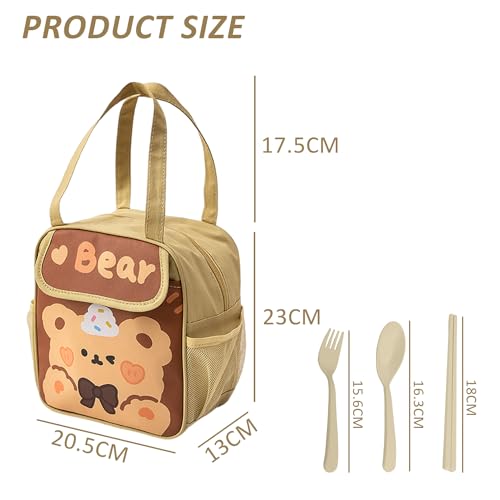 Contenuto del prodotto: riceverete una borsa per il pranzo per bambini marrone chiaro con un set di stoviglie beige, tra cui forchette, cucchiai e bacchette. Il pratico set di stoviglie offre ai vostri bambini comfort e comfort durante l'uso di stoviglie per soddisfare le vostre esigenze.